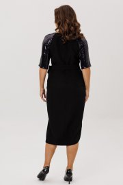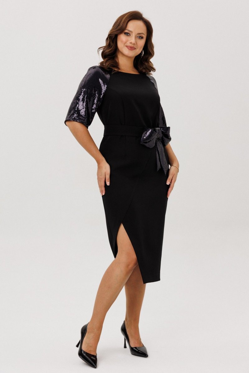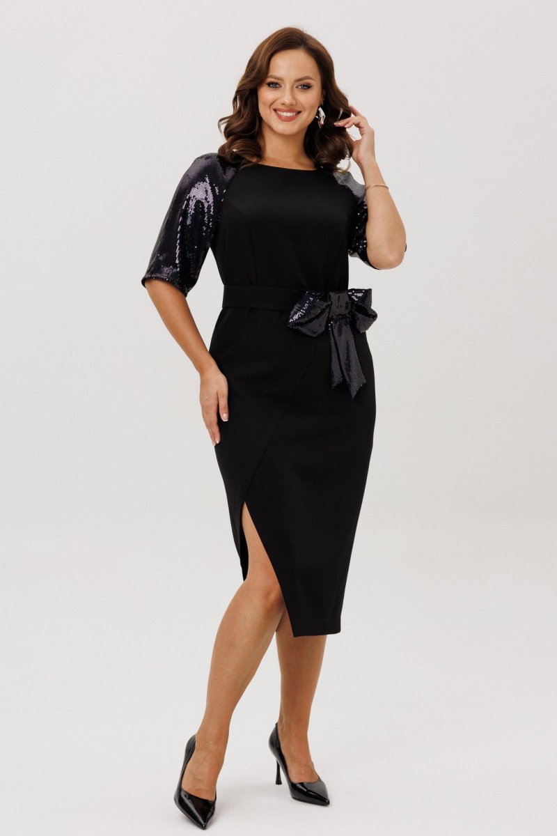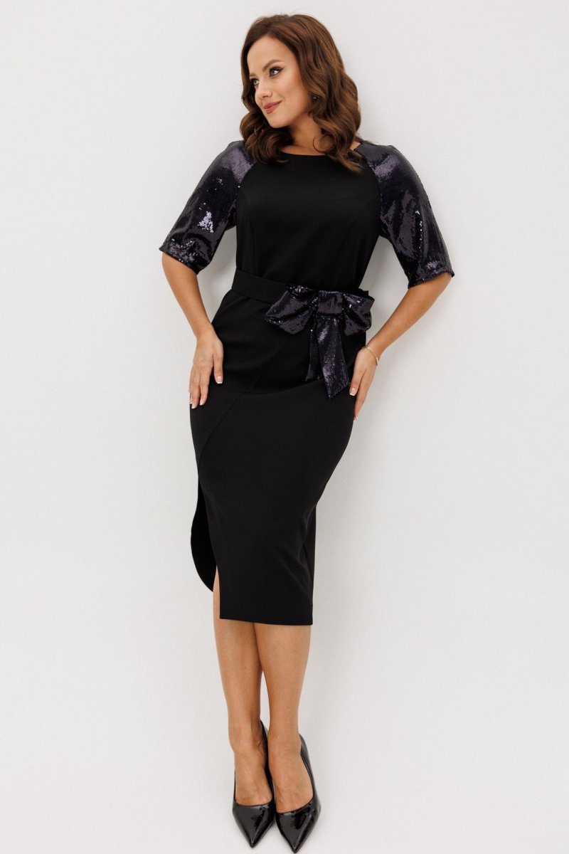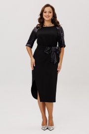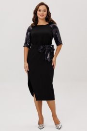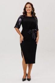 Нарядное женское платье, выполненное из двух видов ткани: плательно-костюмной (тянется ) и плательной с пайетками (тянется).