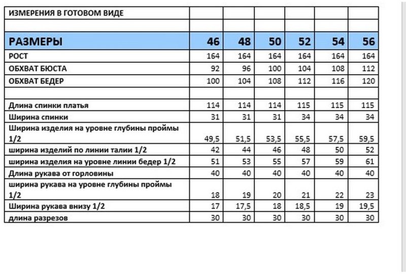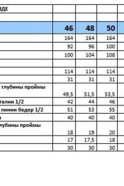 Таблица размеров