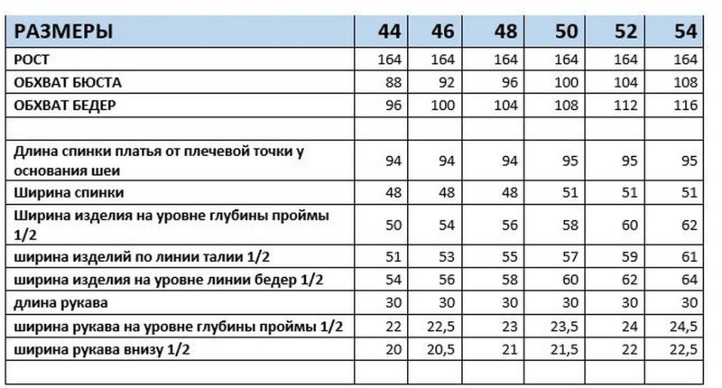 Таблица размеров