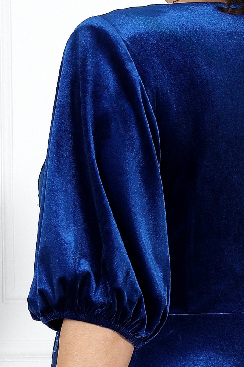 Это не просто наряд — это воплощение элегантности и утончённого вкуса. Мягкий бархатный велюр играет на свету, создавая эффект дорогого сияния, а дизайнерская аппликация подчёркивает статус и делает образ неповторимым. Платье красиво струится по фигуре: полуприлегающий лиф и расклешённая юбка формируют женственный силуэт, а рукава с лёгкой сборкой добавляют романтичности. Каждая деталь продумана — от изящной посадки до удобной скрытой застёжки. В таком платье вы будете блистать на новогоднем вечере, корпоративе или любом праздничном событии. Это наряд, который не оставит равнодушным и станет вашей визитной карточкой стиля.