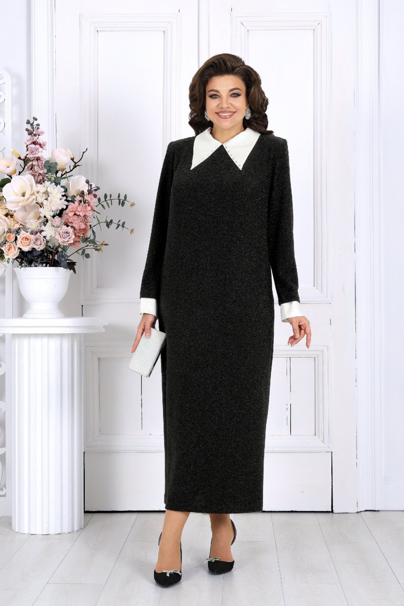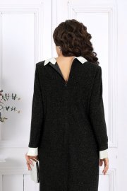 Это платье станет прекрасным выбором для вечерних мероприятий, деловых встреч или особых случаев, когда хочется быть уверенной в себе и выглядеть восхитительно. Выполненное из трикотажного полотна с изысканной фактурой и блеском люрекса, оно привлекает взгляд и подчеркивает вашу индивидуальность. Воротник и манжеты легко снимаются, превращая платье из нарядного вечернего в более повседневный вариант.
