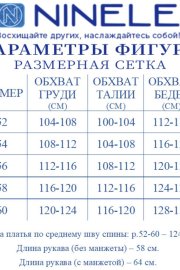 Длина платья-124 см; длина рукава (без манжеты)-58 см; длина рукава (с манжетой)-64 см.
