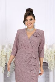 Ослепительное платье из мерцающего люрекса создано для тех, кто хочет выглядеть роскошно и уверенно на любом торжестве. Эта модель моментально притягивает взгляд — благородный блеск ткани, элегантный V-образный вырез, женственный запах и изящные складки создают по-настоящему праздничный образ, который подчёркивает фигуру и делает её зрительно стройнее.