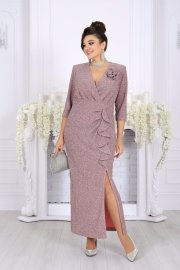 Ослепительное платье из мерцающего люрекса создано для тех, кто хочет выглядеть роскошно и уверенно на любом торжестве. Эта модель моментально притягивает взгляд — благородный блеск ткани, элегантный V-образный вырез, женственный запах и изящные складки создают по-настоящему праздничный образ, который подчёркивает фигуру и делает её зрительно стройнее.