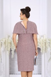 Особый акцент модели — эффектная пелерина с фигурным низом и разрезами от плечевых швов. Она создаёт ощущение многослойности, скрывает зону плеч и рук и добавляет образу торжественности. Съёмный декоративный цветок позволяет менять настроение платья — от сдержанной классики до выразительного праздничного образа.