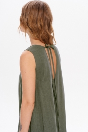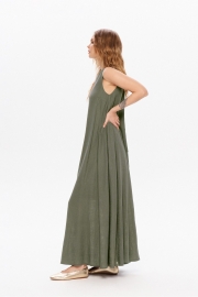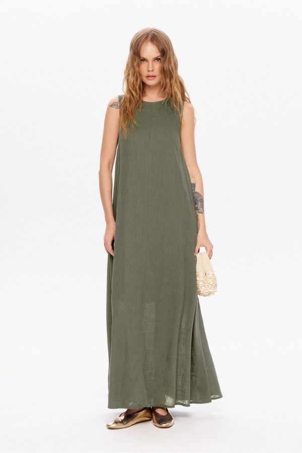 Макси-платье с фигурной спинкой. Детали: трапециевидный силуэт, нагрудные вытачки, средние швы переда и спинки, боковые карманы, подкладка платья- 100% хлопок. Длина платья по боковому шву около 112 см