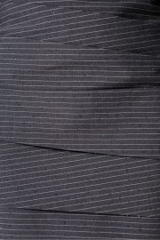 Детали: платье полуприлегающего силуэта, отрезное по талии с напуском, нижняя часть переда с ассиметричными складками, нижняя часть спинки с талиевыми вытачками, верхняя часть платья со складками на талии, рубашечный воротник, застёжка на потайную планку с пуговицами, потайная молния в боковом шве, рубашечный покрой рукава с расширенным плечом, широкие манжеты. Юбка платья на подкладке.
