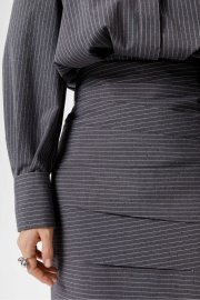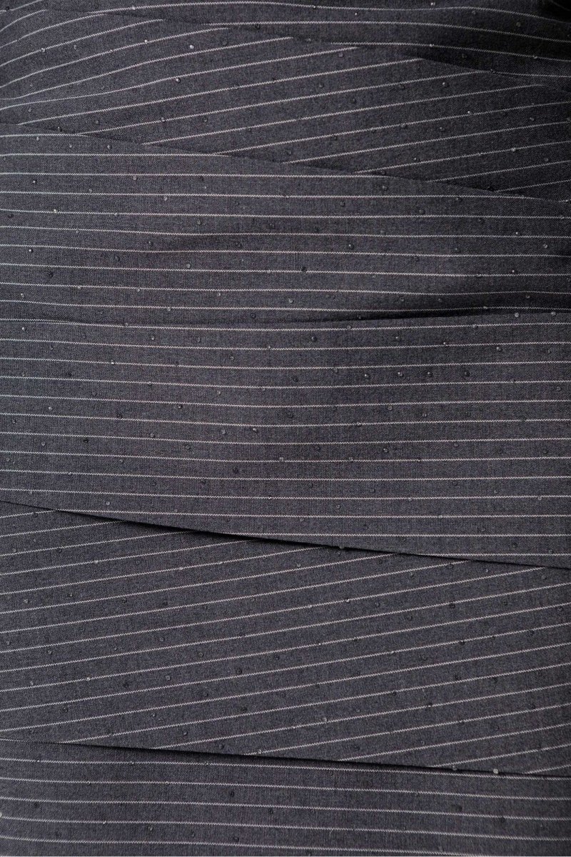 Платье-рубашка из текстильной ткани в тонкую полоску со стразами.