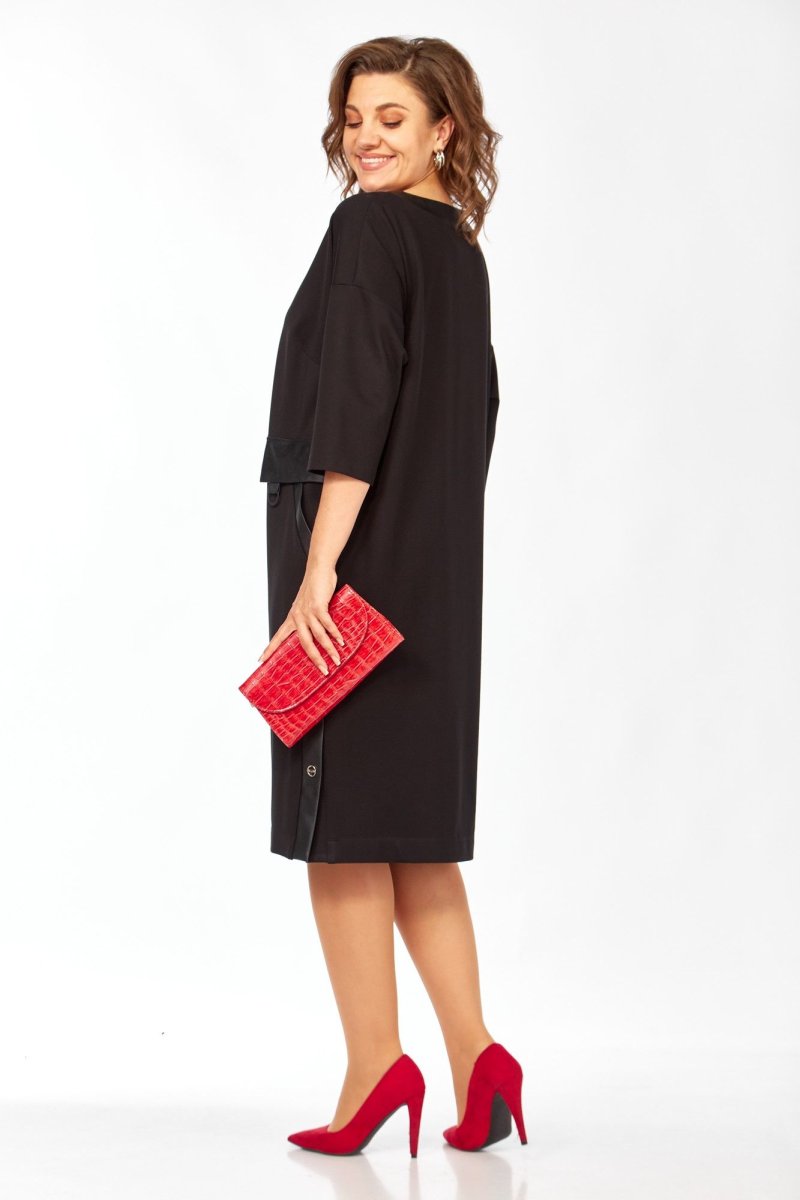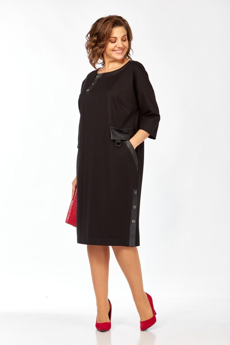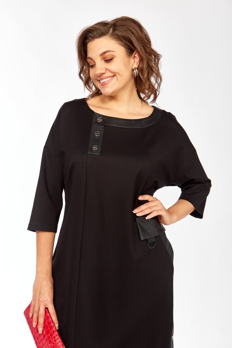 Женское платье из трикотажа с элементами экокожи Ищете вещь, которая подчеркнёт вашу индивидуальность и подарит комфорт каждый день? Это платье создано именно для вас! - Стильный дизайн: прямой силуэт и асимметричная вставка в горловине добавляют оригинальности. - Практичные детали: карман с клапаном и боковая шлица делают образ не только красивым, но и удобным. - Комфорт в движении: мягкий трикотаж и рукава 3/4 обеспечивают лёгкость и свободу. - Универсальность: подходит для разных типов фигуры, легко комбинируется с аксессуарами и обувью. Это платье станет вашим секретом стильного образа — будь то офис, встреча с друзьями или вечерний выход. Оно подчеркнёт вашу уверенность и добавит нотку элегантности в любой ситуации.