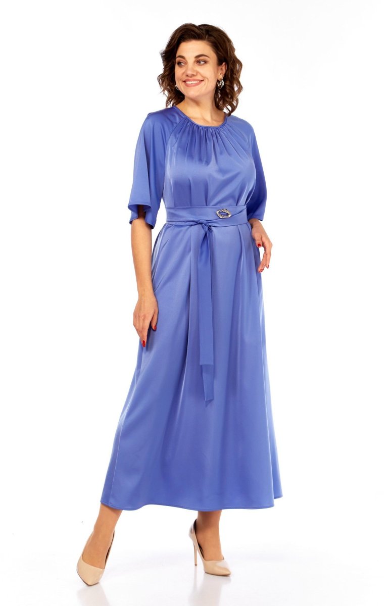 Сочетание элегантности и изысканности. Минималистичное по крою платье длины макси из двустороннего сатина. Вырез горловины округлый, спереди на сборке. Рукав реглан, расширенный к низу. Спинка со средним швом и углубленным разрезом сверху. Линия талии дополнительно подчёркивается поясом с декоративной фурнитурой.