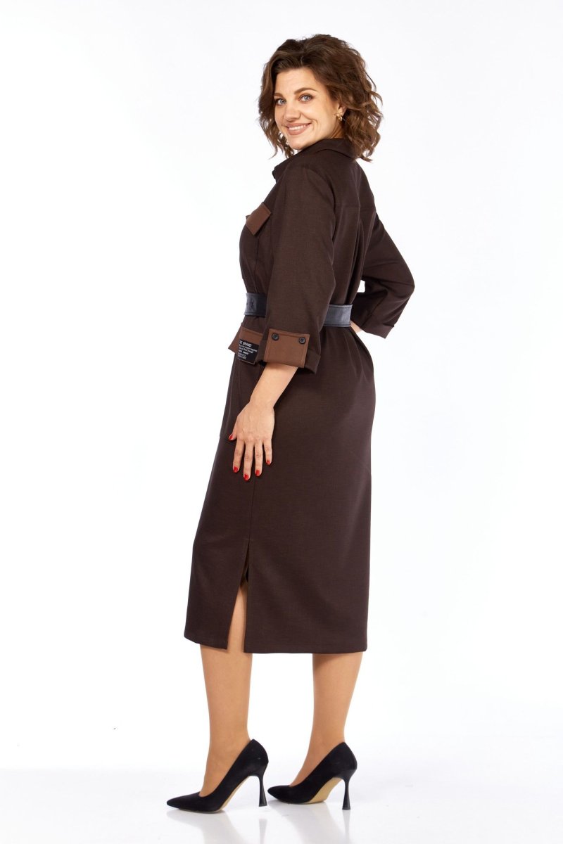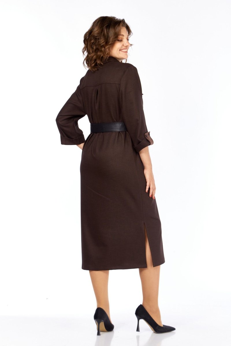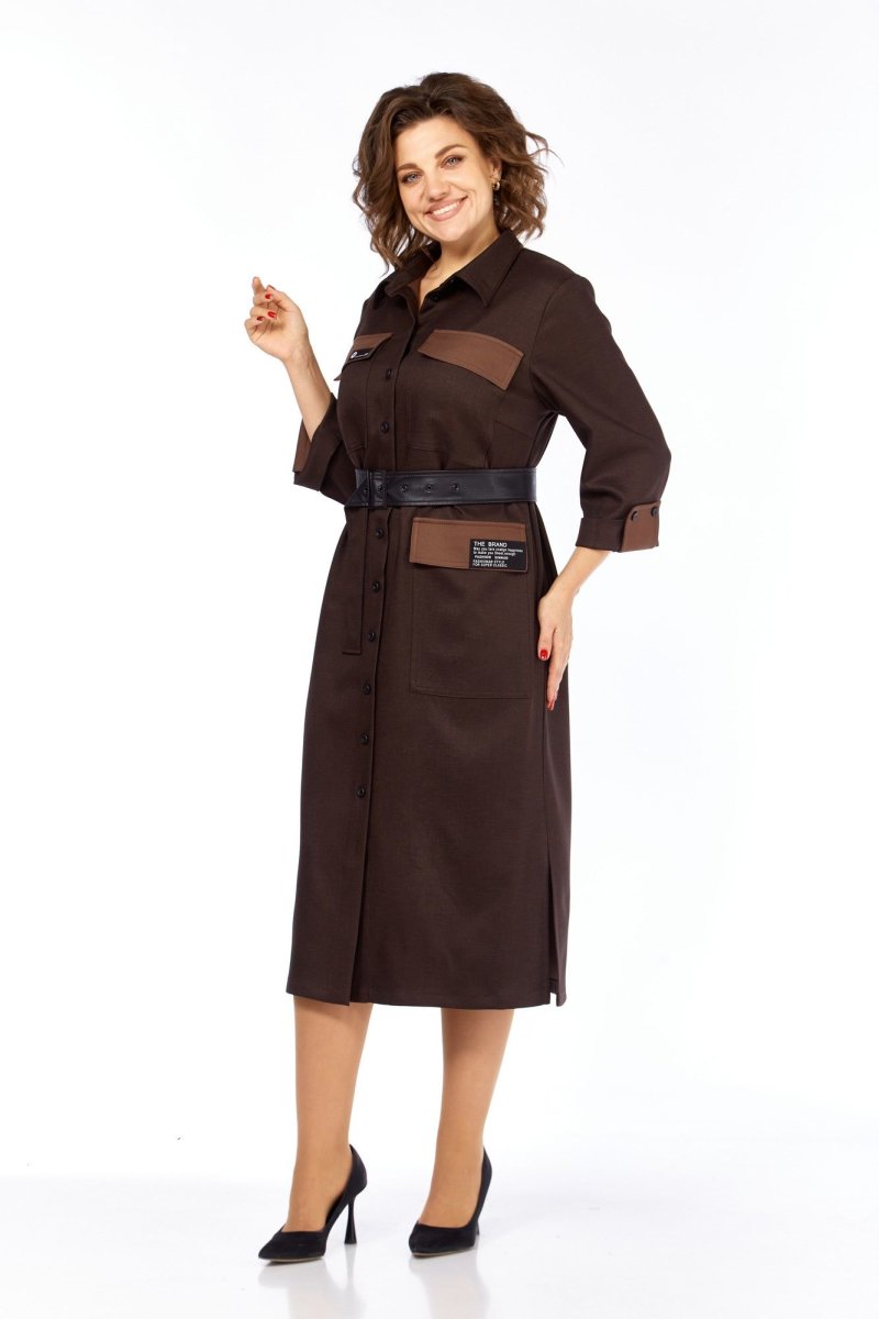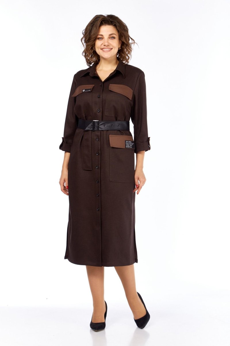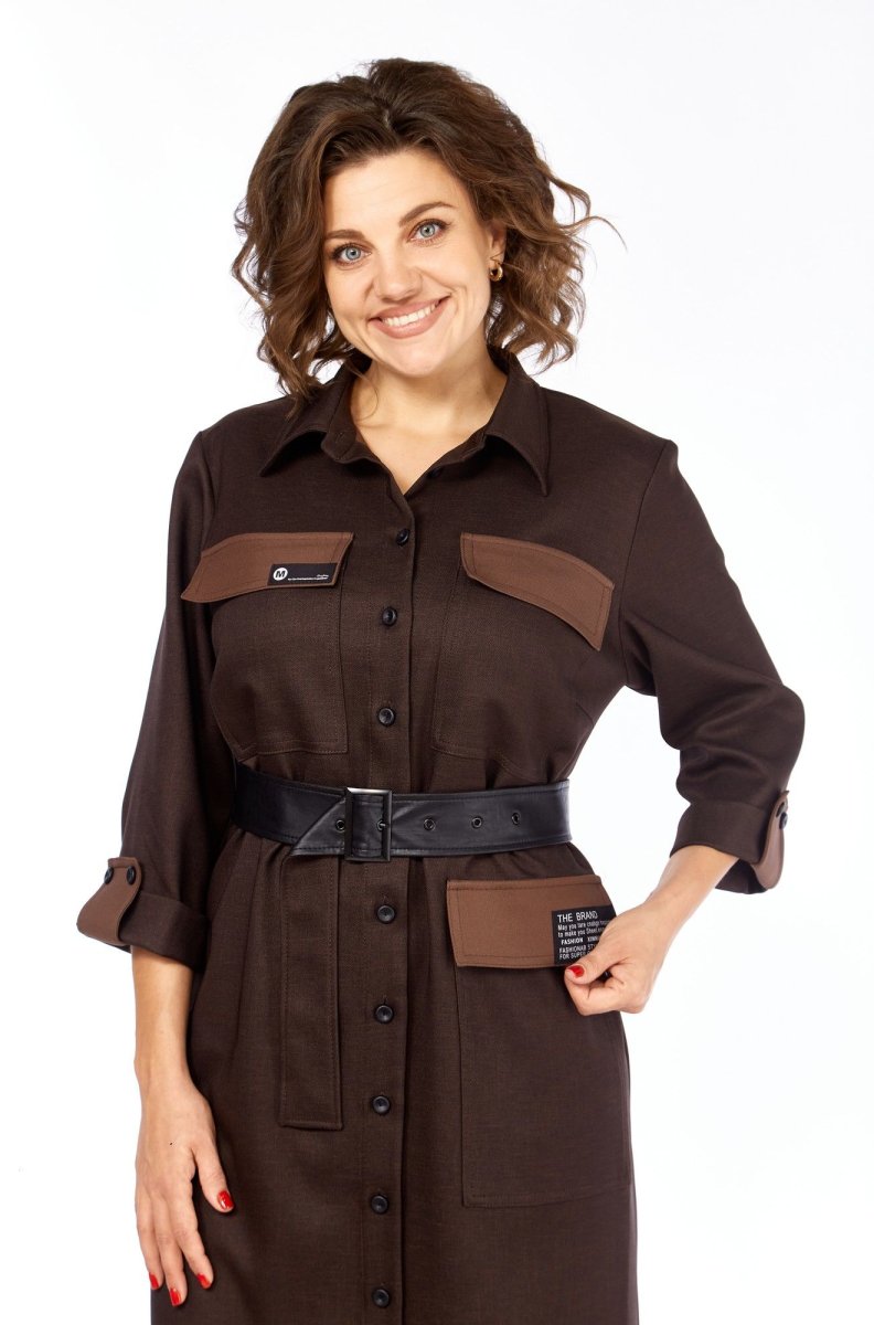 Современное платье прямого силуэта в стиле сафари. Отличный выбор для Вас в любое время года! По переду платья расположены два накладных нагрудных кармана с клапанами и один - по боковому переда. Центр платья на планке, застегивающейся на петли-пуговицы до низа. Спинка с кокеткой и средним швом. Боковой шов платья с разрезами внизу. Горловина с рубашечным воротником на притачной стойке. Рукав одношовный длиной 7/8 с декоративной планкой. Платье дополняет съемный пояс, подчеркивающий талию.