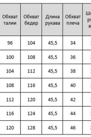 Размер Обхват груди (см) Грудь Обхват талии (см) Талия Обхват бедер (см) Бедра