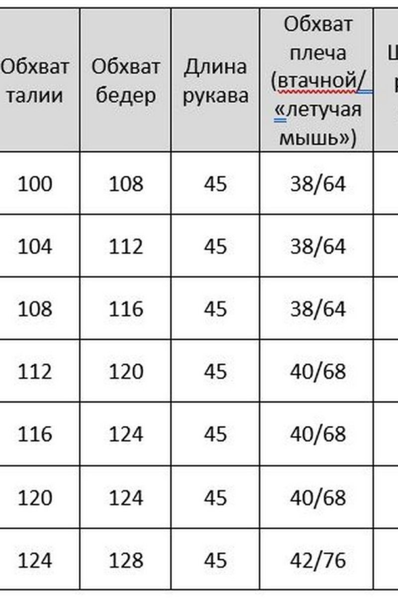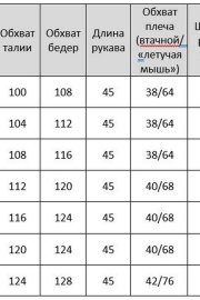 Размер Обхват груди (см) Грудь Обхват талии (см) Талия Обхват бедер (см) Бедра