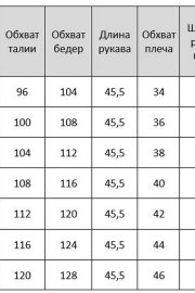 Таблица размеров