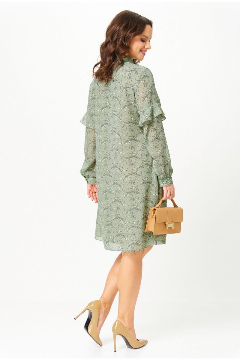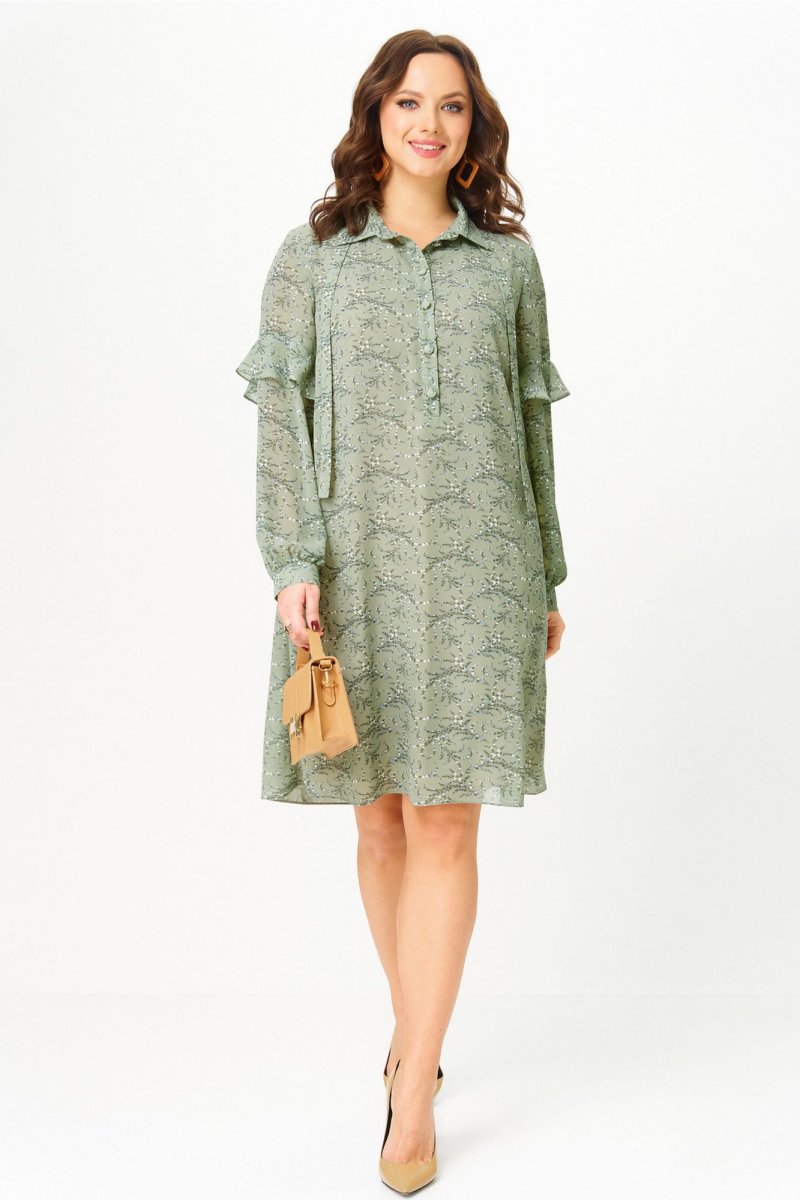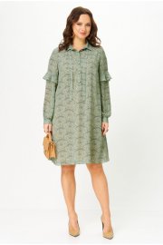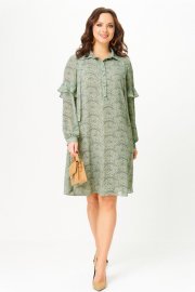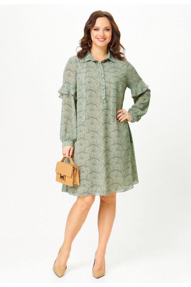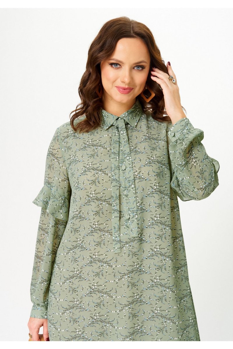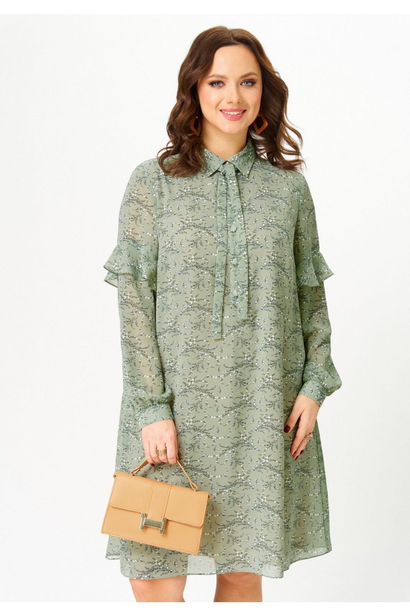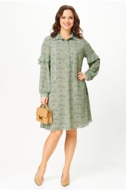 Платье прямого силуэта, длиной ""миди"", выполненое из итальянского шифона. Перед и спинка платья цельнокроеные. Перед с нагрудными выточками и центральной застёжкой до линии талии, на петли и пуговицы, на притачной планке. Горловина обработана воротником рубашечного типа. Под воротником закреплена завязка, которая может использоваться в качестве декоративного небольшого банта. Спинка лифа цельнокроеная. Рукав втачной, длинный, с приточной манжетой по низу рукава, которая застёгивается на петлю и пуговицу. Чуть выше линии локтя, по рукаву, обработан декоративный волан. В боковых швах платья обработаны карманы. Платье идеально подойдет для любых повседневных мероприятий, будь то прогулка по городу, встреча с подругами или поход в кафе. Платье можно сочетать с туфлями на каблуке для более элегантного образа или с плоскими сандалиями для создания более легкого и непринужденного стиля. Выбирая это платье, вы будете выглядеть стильно, современно и привлекательно.