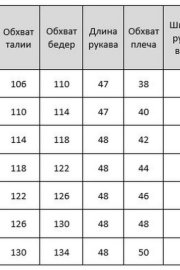 Таблица размеров