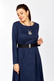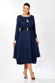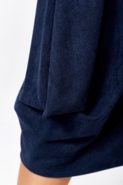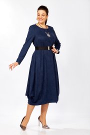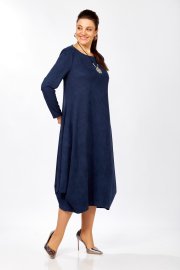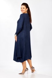Базовое элегантное платье расширенного силуэта в стиле «бохо» с ассиметричным подолом. Модель выполнена из тонкой трикотажной ткани синего оттенка, свободно струящейся по фигуре, создавая утонченный силуэт. Длинные рукава и длина миди делают его идеальным для повседневной носки. Вырез горловины округлой формы у боковых швов со складками. Платье дополнено поясом, что позволяет регулировать ширину по линии талии. Длина изделия по среднему шву спинки 118,5см., длина рукава 59см. Декор может отличаться от представленного на фото.