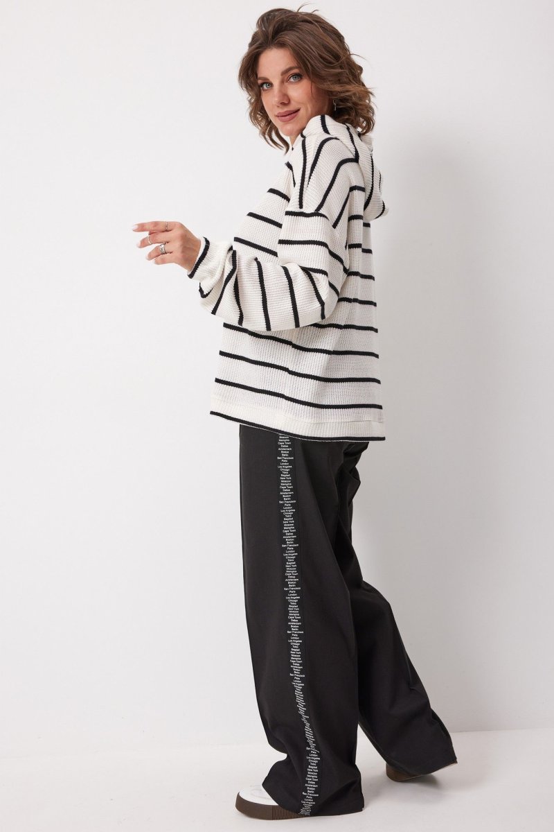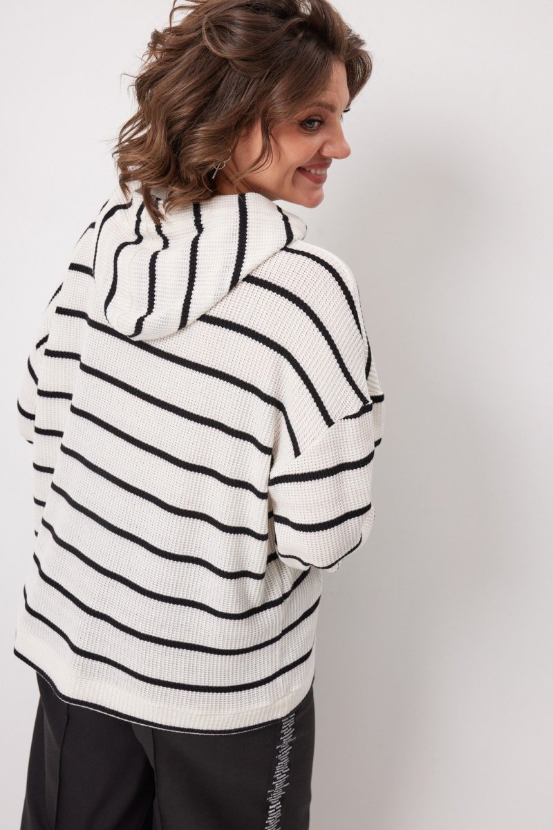 Предлагаем Вам интересную, невероятно комфортную модель, выполненную из мягкого вискозного трикотажа в полоску, которая с лёгкостью впишется в гардероб, позволяя создавать множество многослойных образов.