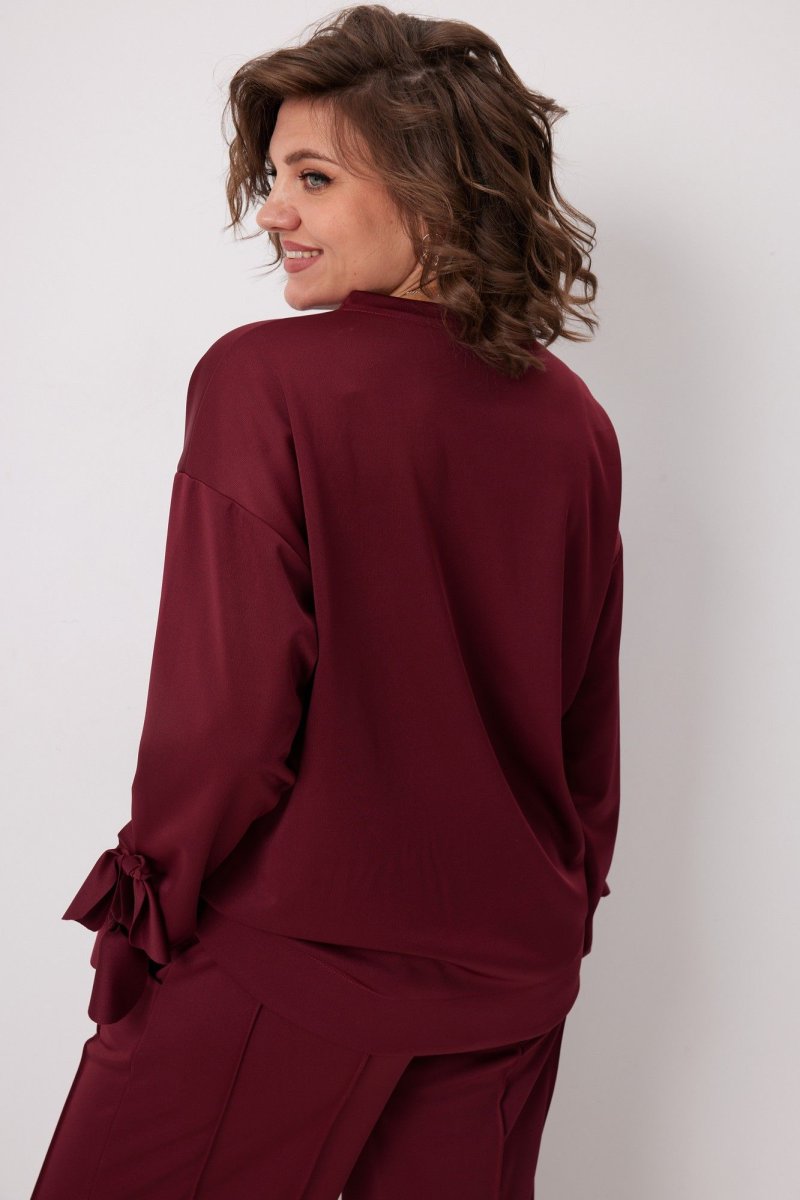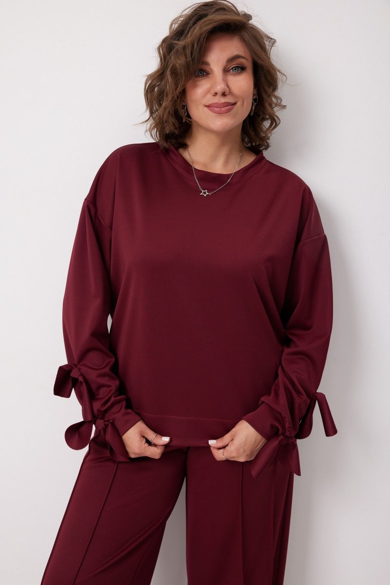 Удобный, стильный свитшот из мягкого, эластичного трикотажа позволит обратить на себя внимание и создаст отличное настроение! Трендовые цвета: мокко, индиго, вишня разбавят осеннюю хандру, позволив создать яркий дорогой образ. Свободный силуэт модели подарит чувство уюта и комфорта. Декоративная отделка пришивными бантами из основного материала с необработанным срезом добавляет шарм его обладательнице.