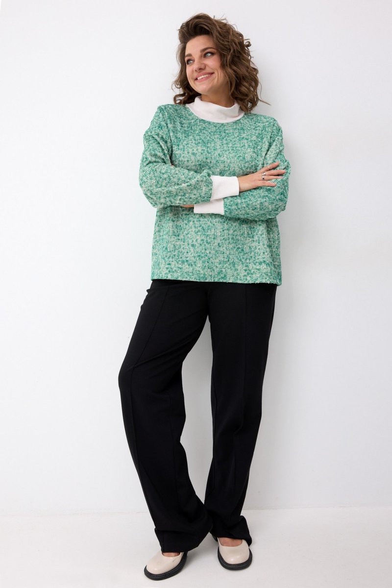 Трикотажный лонгслив, являющийся воплощением комфорта и элегантности! Мягкий, приятный к телу материал окутывает нежностью, а фактура добавляет образу изысканность и шарм. Красивый приятный оттенок малахита освежит Ваш образ в прохладные дни. Модель идеально сочетается с джинсами и ботинками для создания расслабленного повседневного образа, с прямой юбкой и каблуками для более элегантного выхода.