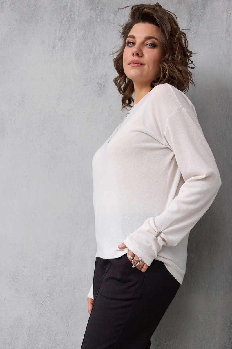 Вы непременно полюбите этот мягкий, нежный, уютный лонгслив из приятного к телу трикотажа. Освежающий, актуальный вне времени молочный цвет незаменим в современном гардеробе стильной модницы, поскольку помогает создать множество гармоничных сочетаний. Это базовая модель, которую можно носить самостоятельно, а также использовать в сочетании с жакетом, жилетом.
