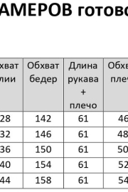 Размер Обхват груди (см) Грудь Обхват талии (см) Талия Обхват бедер (см) Бедра