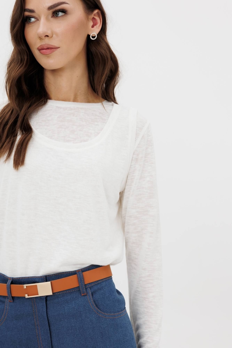 Лонгслив-это идеальное решение для создания расслабленных образов на каждый день простых нарядов на выход, а сочетание его с майкой из того же полотна-простой и элегантный вариант, чтобы сделать образ еще более интересным. Полуприлегающий силуэт, втачной покрой, круглая горловина, длинный зауженный рукав. Майка полуприлегающего силуэта с углубленной круглой горловиной. Длина лонгслива около 60 см Длина рукава около 60 см Длина майки около 56 см.