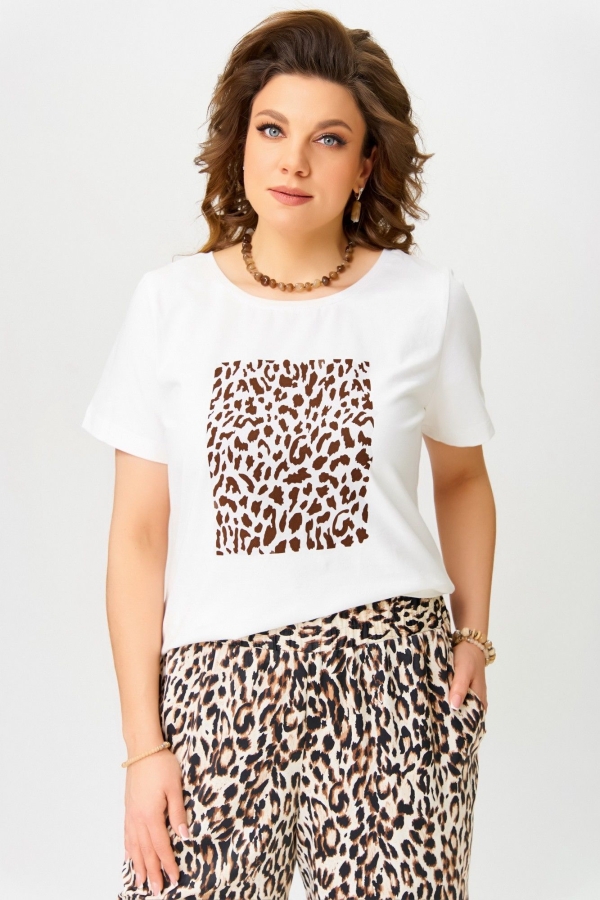 Джемпер "Таина" прилегающего силуэта. По груди вытачка. Горловина обработана планкой. На полочке печать "Леопард". Рукав втачной одношовный. Низ джемпера и рукава обработан распошивалкой.