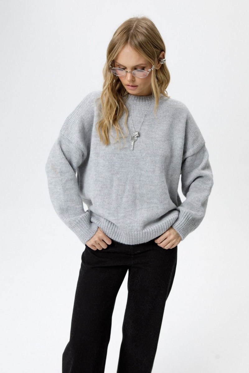 Базовый джемпер объемной вязки с добавлением шерсти.