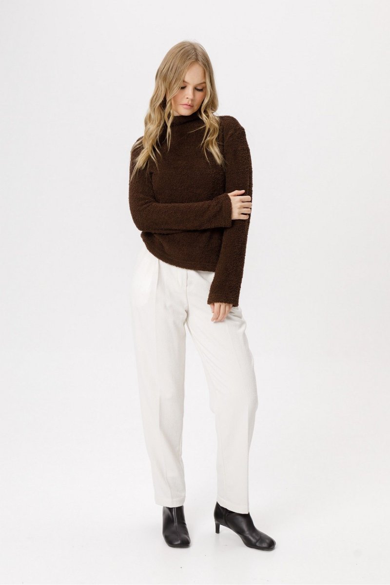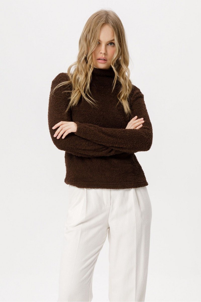 Джемпер из фактурного трикотажа с цельнокроеной стойкой.