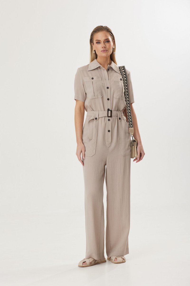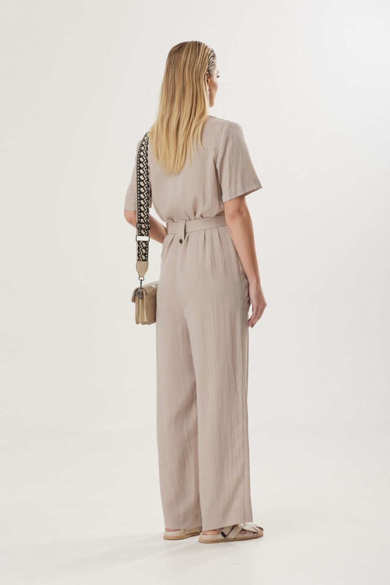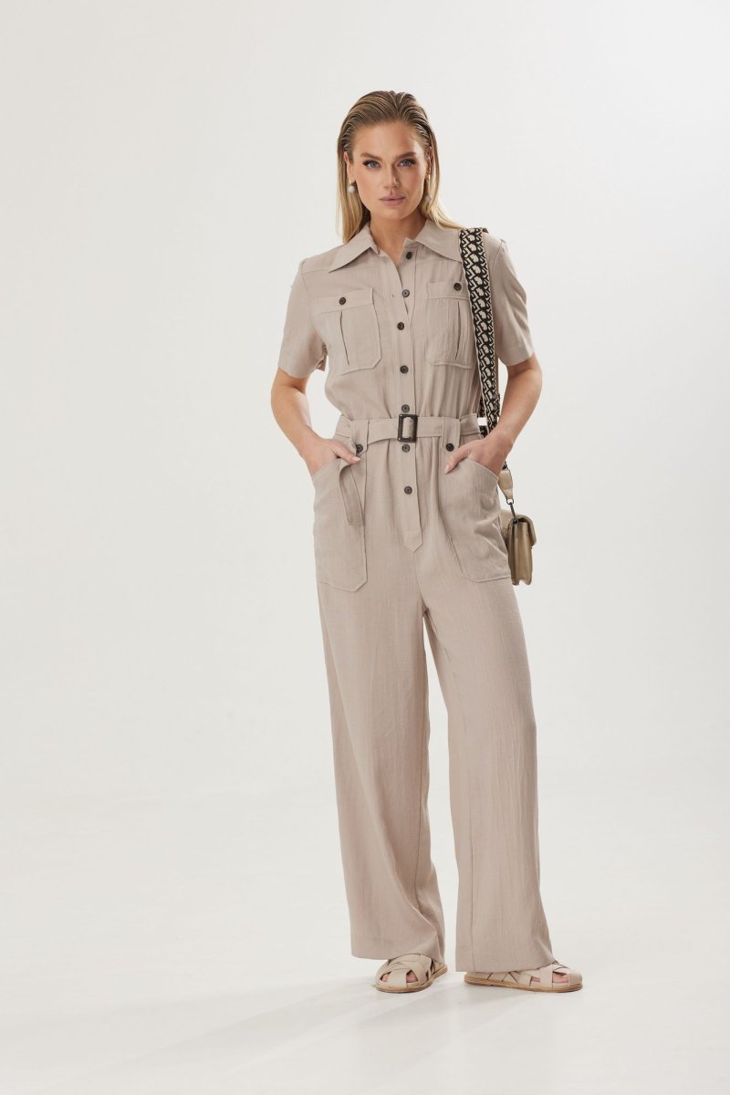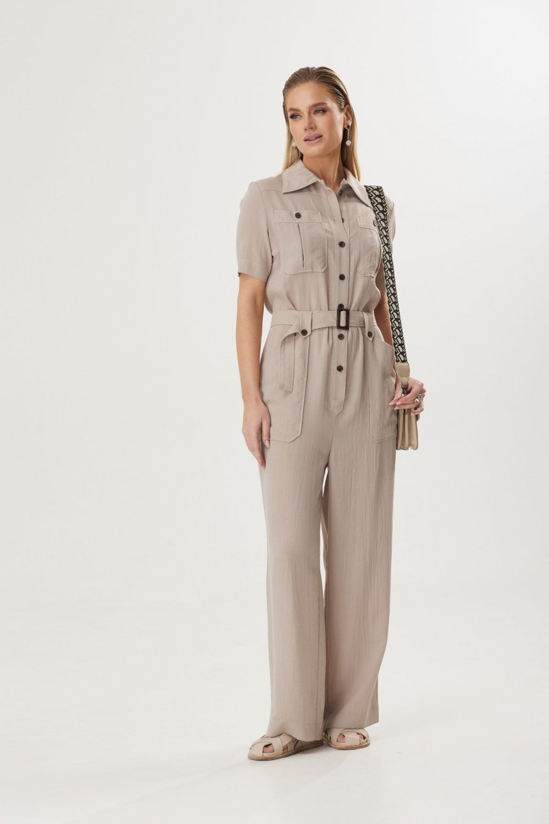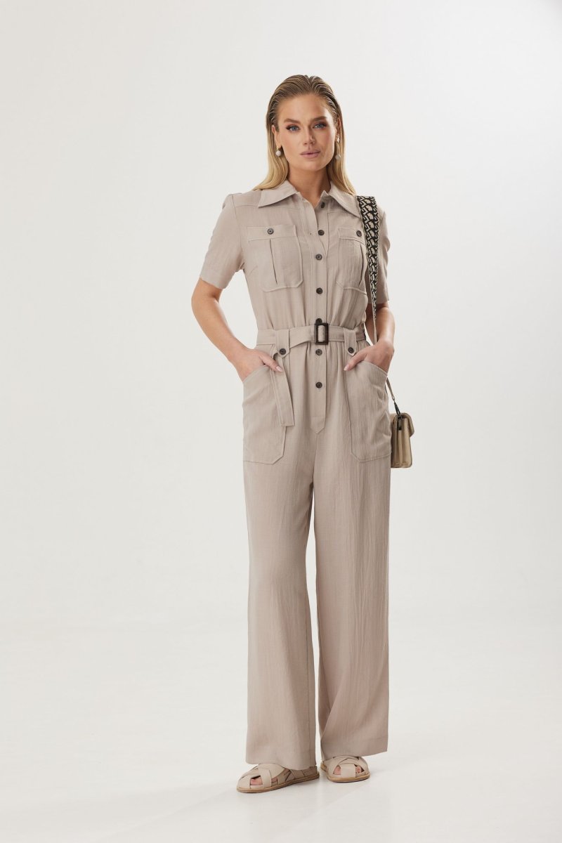 Стильный женский комбинезон с натуральным льном в составе понравится ценительницами комфорта. Его можно носить, как с классической обувью, воплощая в жизнь элегантный и женственный образ, либо со спортивной, создавая эффект легкой небрежности. Выбранный состав ткани обеспечивает воздухопроницаемость и делает модель идеальной для летнего периода.