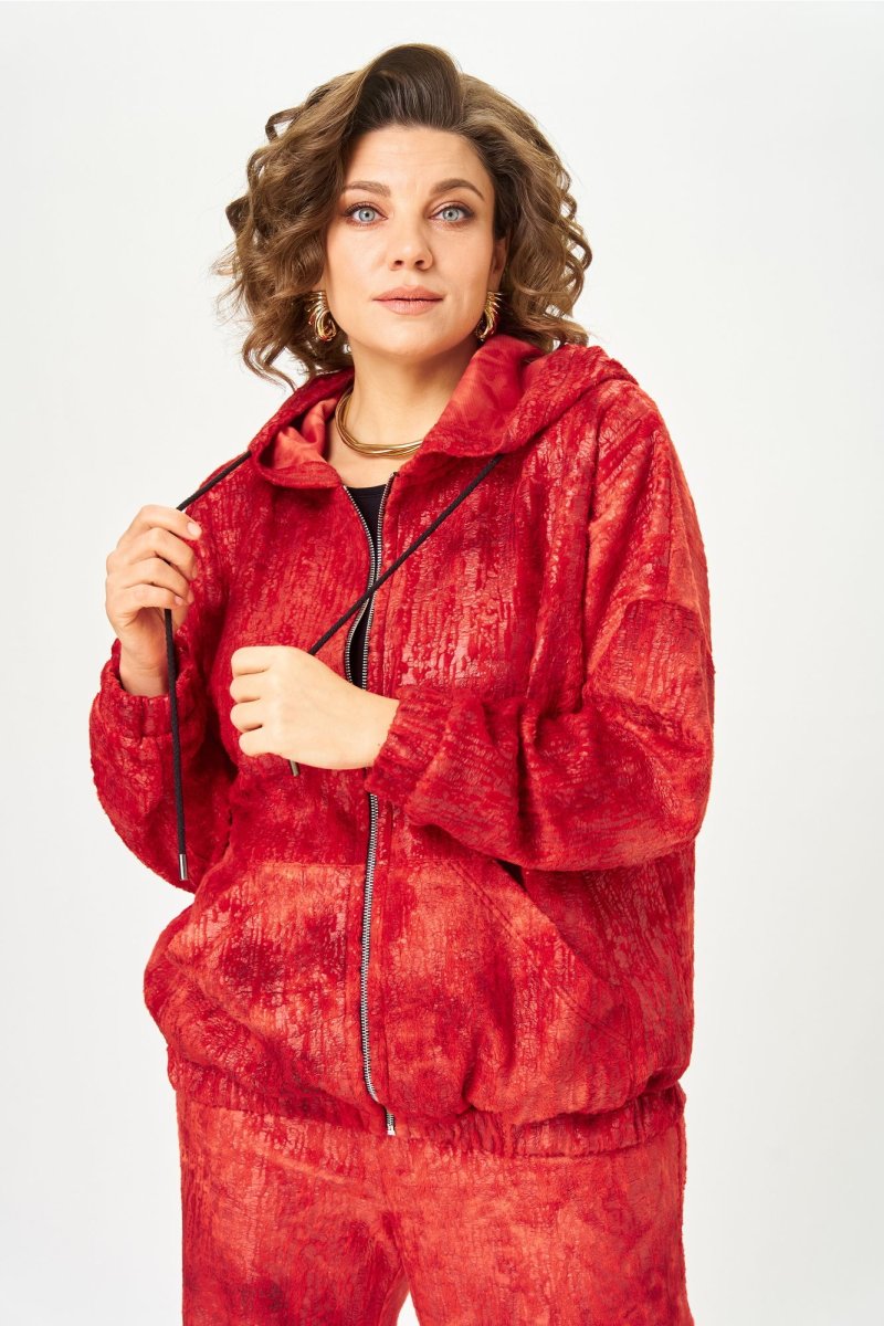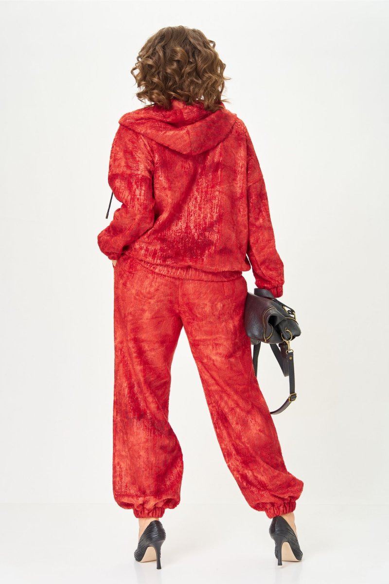 Костюм состоящий из худи и брюк выполнен из плюша на трикотажной основе. Плюш с эффектом напыления.