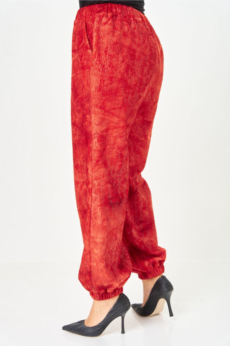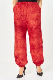 Брюки свободные, по талии на притачном поясе и по низу на притачной манжете с резинкой. По передним половинкам брюк выполнены наклонные карманы.