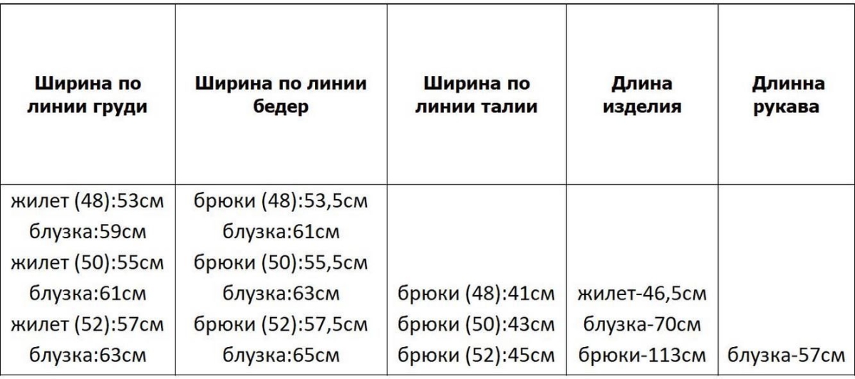 Комплектация: Блуза, Брюки, Жилет