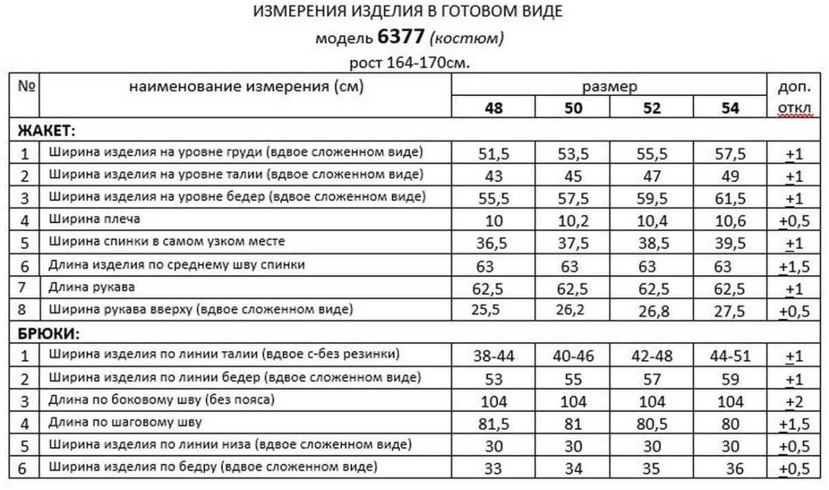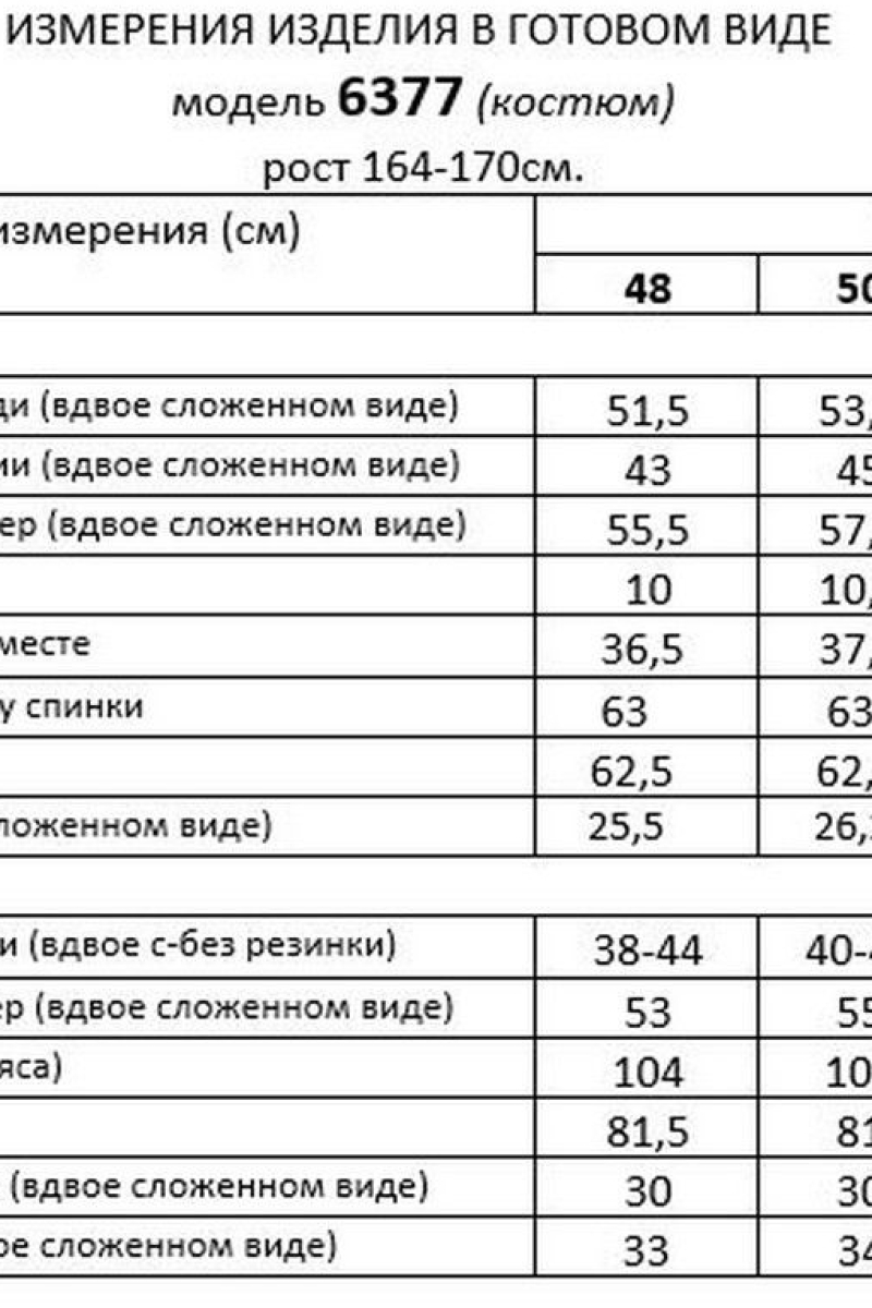 Размеры: 50, 52, 54, 56, 58, 60, 62, 64, 59
