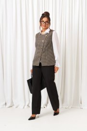 Состав: жилет – вискоза 89%; акрил 8%; эластан 3% брюки – вискоза 60%; п/э 37%; спандекс 3% блузка – пэ 75%; вискоза 25%