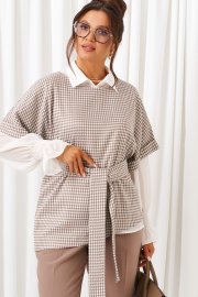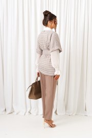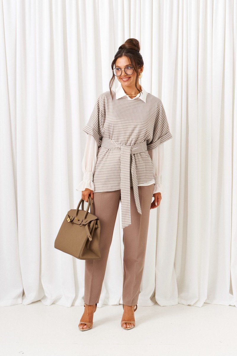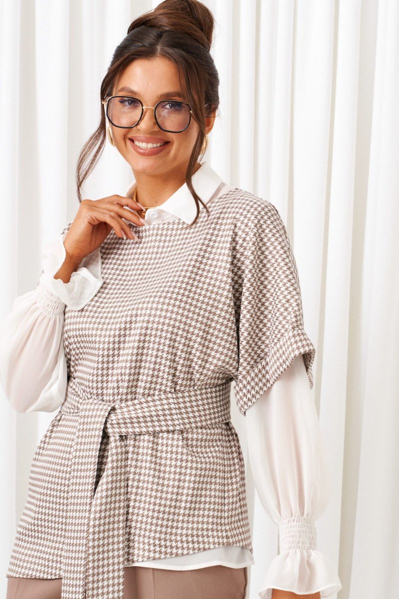 Жилет изготовлен из смесовой ткани с актуальным дизайном ломанной клетки «пье-де-пуль».