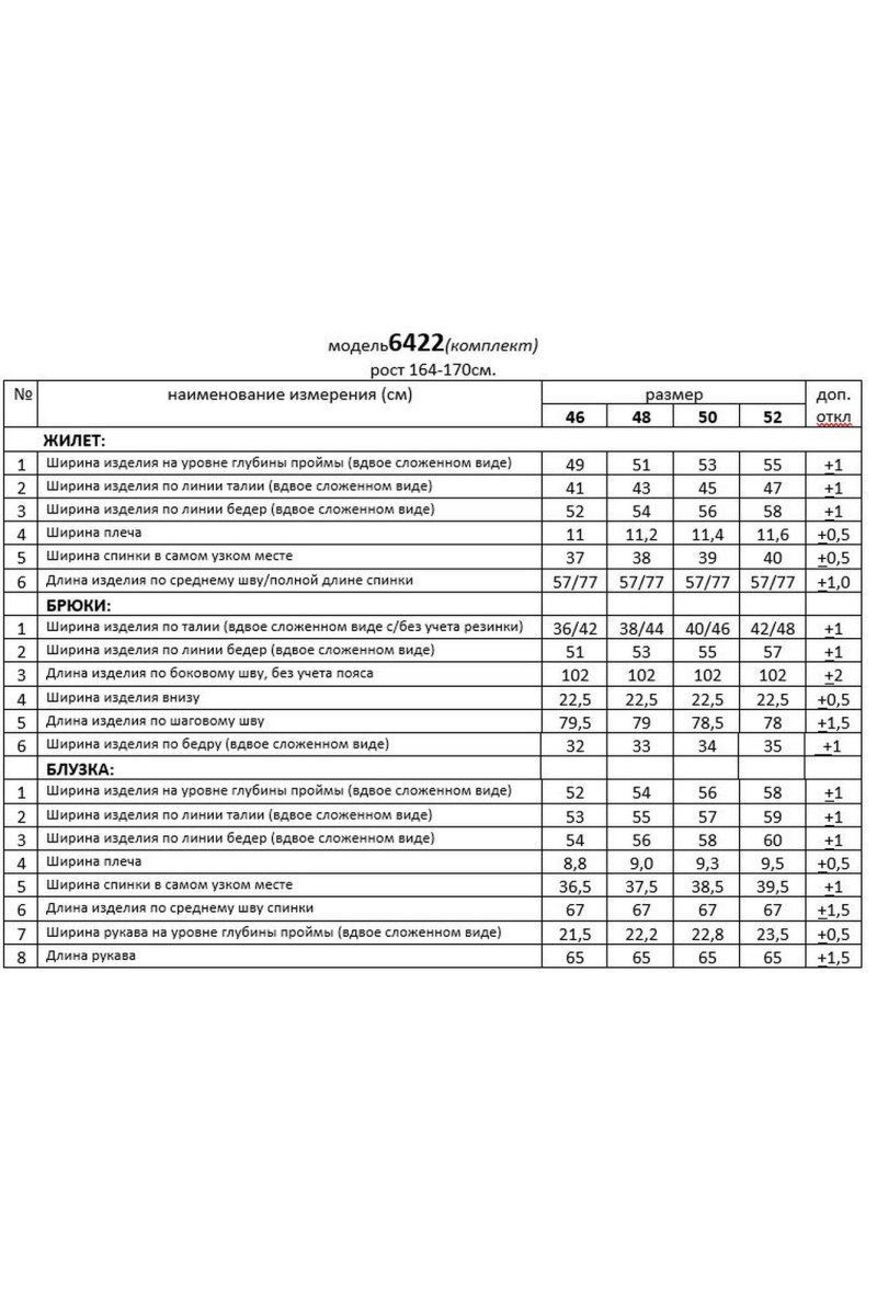 Состав: жакет, брюки - вискоза 61%, пэ 22%, пан 14%, эластан 3% блузка – пэ 75%, вискоза 25%