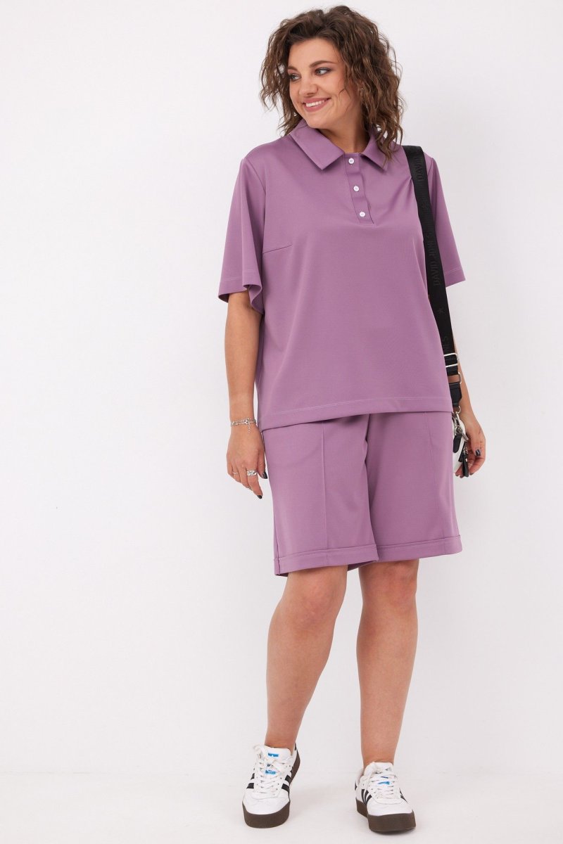 Яркий стильный женский комплект свободного кроя, состоящий из блузы - поло и шорт, выполнен из трикотажной, мягкой, растяжимой ткани с эффектом перелива. Отличный вариант для насыщенного впечатлениями лета. Потрясающе удобный и трендовый костюмчик с укороченными шортами, который должен быть в гардеробе любой модницы!