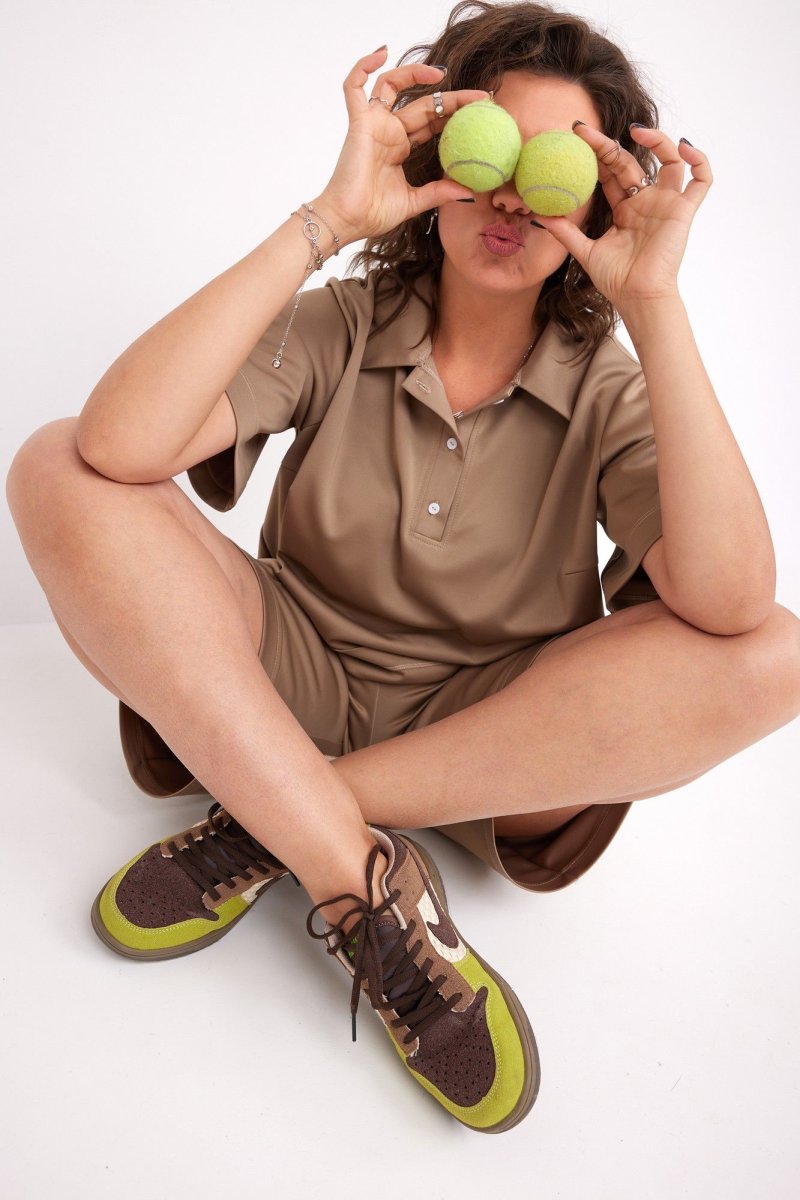 Яркий стильный женский комплект свободного кроя, состоящий из блузы - поло и шорт, выполнен из трикотажной, мягкой, растяжимой ткани с эффектом перелива. Отличный вариант для насыщенного впечатлениями лета. Потрясающе удобный и трендовый костюмчик с укороченными шортами, который должен быть в гардеробе любой модницы!