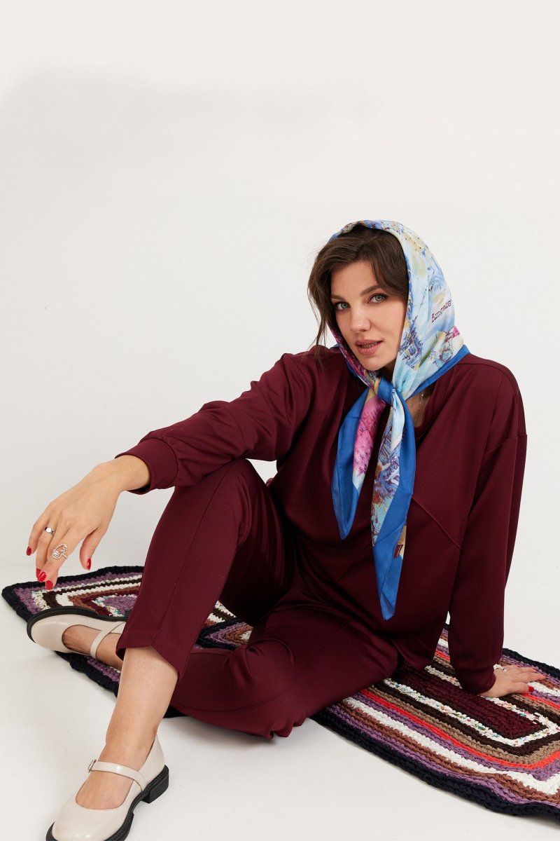 Потрясающий современный комплект из мягкого, эластичного трикотажа позволит обратить на себя внимание и создаст отличное настроение! Свободный силуэт свитшота подарит чувство комфорта. Декоративная отделка бисерной строчкой правильно расставляет акценты, создавая нужные линии, что позволяет визуально подчеркнуть достоинства фигуры. Брючки с застроченной стрелкой идеально садятся по фигуре, невероятно стройнят и удлиняют Ваши ножки!