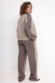 Свитшот свободного силуэта, горловина полукруглой формы обработана притачной обтачкой из основного материала, декорирована металлической брошью. Рукав реглан с манжетой по низу. Низ изделия обработан обтачкой. Брюки свободного силуэта, с застроченными стрелками. Пояс на резинке с островком для Вашего удобства. В боковых швах карманы «Хулиганы». Низ обработан классическим способом вподгибку.