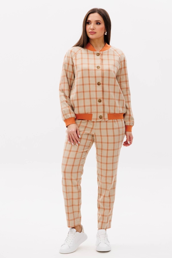 ""Тэнсол"", ""принц Уэльский"", тартан"", гусиная лапка... Эти стильные принты помогут выделиться из толпы тем, кто не любит яркие детали. Костюм из такой ткани смотрится выигрышно сам по себе и не требует дополнительных акцентов. Для активных и современных девушек мы предлагаем в весеннем сезоне не стандартный вариант брючного костюма, а смелое сочетание трендовой ткани и спортивного стиля: классические брюки +спортивный бомбер. Согласитесь это смотрится великолепно! Свободный силуэт, покрой реглан, застежка центральная, воротник, манжеты рукавов и низ изделия из отделочной тесьмы-довяза. Полочка с боковым рельефом и карманом. Брюки классического покроя с отрезным поясом (эластичным в области спинки),ж наклонными боковыми карманами и мягкими складками на передних половинках.