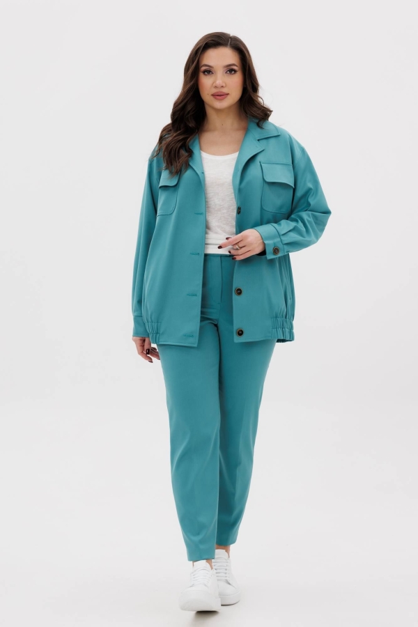 Лёгкость, непринуждённость, свежесть цвета и комфорт - пожалуй, основные аргументы при выборе весеннего брючного костюма. Не отказывайте себе в удовольствии экспериментировать с моделью и цветом! Костюм в сите кэжуал, невероятно удобный, в котором классический пиджак уступил место мега-комфортному пиджаку-куртке. Свободный покрой с заниженной линией плеча, рукав расширенный в области оката, втачной воротник и центральная застёжка на тесьму-молнию. Полочка с отрезной кокеткой и прорезным карманом с листочкой. Спинка с отрезной кокеткой и средним швом. Рукав двухшовный. По низу изделия - кулиса с регулирующейся эластичной тесьмой. Брюки классические, свободные, с наклонными боковыми карманами, мягкими складками-защипами по передним половинкам и разрезом в шаговом шве, застёгивающимся на молнию. Длина жакета около 54 см, длина рукава с плечом около 74 см. Длина брюк около 105 см.