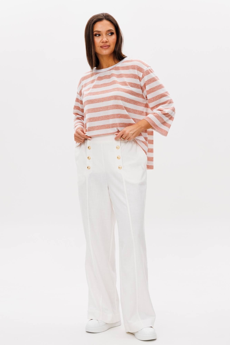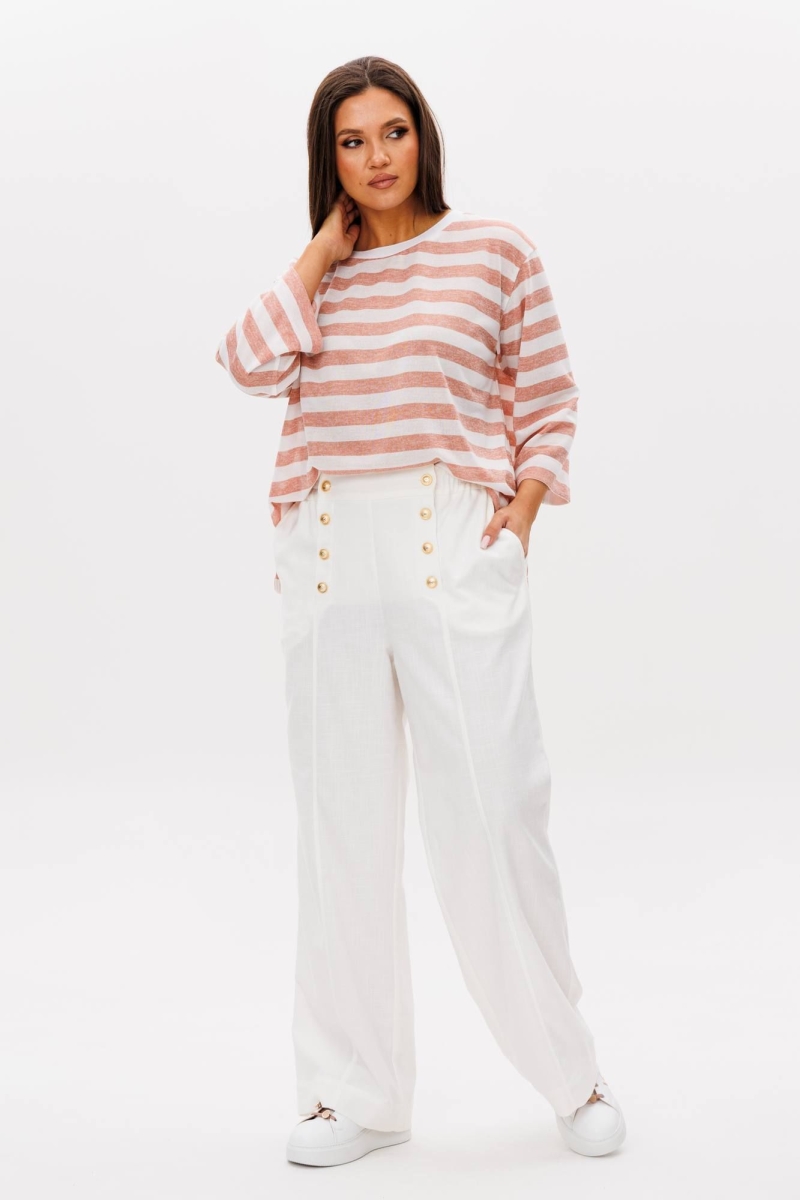 Состав: джемпер хлопок 43%, вискоза 46%, пэ 11%. Брюки вискоза 55%, лён 43%, спандекс 2%