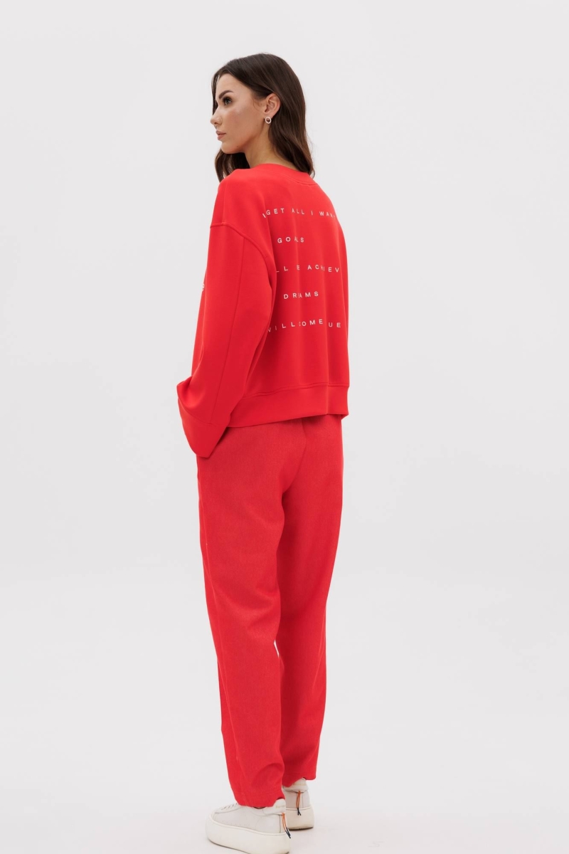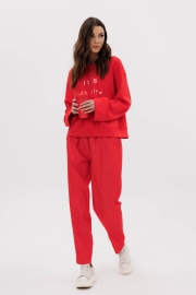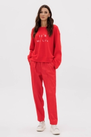 Достаточно посмотреть на моду улиц, чтобы понять: современный casual достаточно перспективен, и в мире моды ему уготовано большое будущее. Комплект невероятно комфортный, сочетающий в себе две разнофактурные, но такие уравновешивающие друг друга полотна. Свитшто-комфортный, универсальный и ультрасовременный предмет гардероба. Он отлично встраивается в любой аутфит и стиль. И поводов приобрести этот элемент одежды более чем достаточно. Его легко адаптировать в стиле спорт-шик, кэжуал и даже в деловом стиле. Свободный упрямленный силуэт, рубашечный покрой, круглая горловина и притачной пояс по низу. По низку рукава-расширенная манжета. На полочке и спинке-авторский принт. Брюки в расслабленном стиле, на эластичном поясе с наклонными боковыми карманами и кантом-защипом по передним половинкам брюк. Длина свитшота около 57 см. Длина рукава с плечом около 76 см. Длина брюк около 102 см.