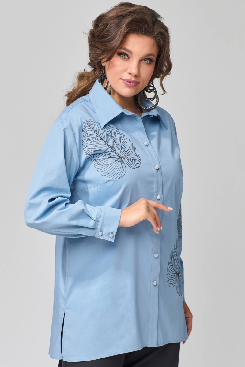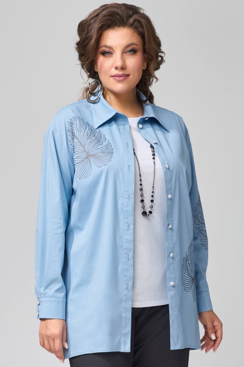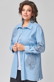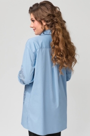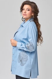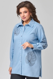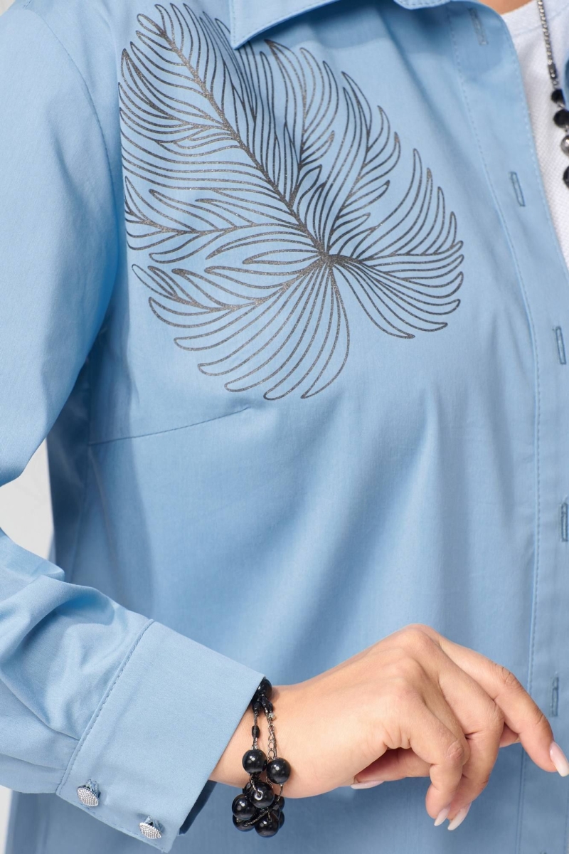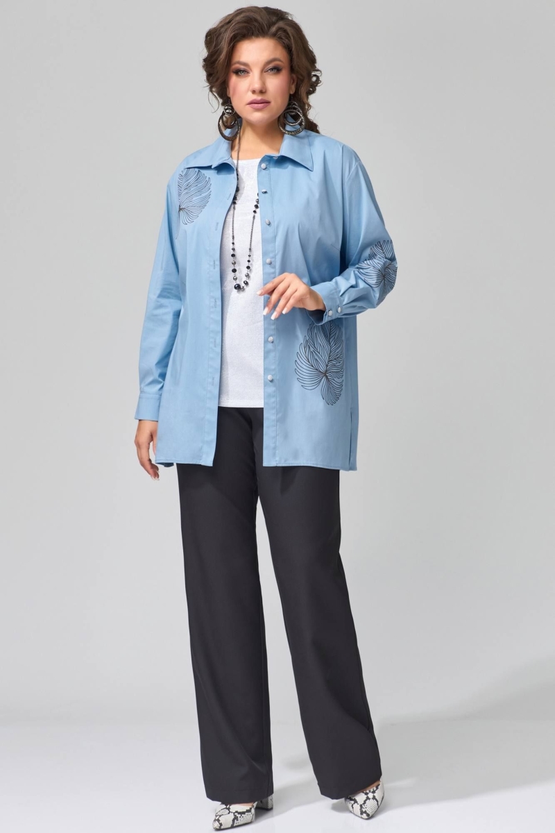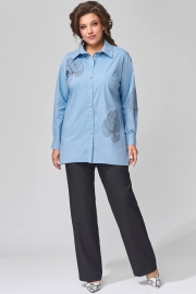 Комплект женский ""Радаси"" тройка. Блуза из хлопокой ткани, прямого силуэта. Рукав втачной, длина рукава не регулируется, манжет на застежку, на петли пуговицы. Воротник рубашечного типа со стойкой, край борта обработан отрезной планкой. Топ прямого силуэта с выточкой по груди. Горловина и пройма обработаны планкой, низ в подгибку. Брюки прямого силуэта с застежкой на молнию и пуговицу. По переду брюк карманы, верх брюки обработан поясом, по спинке резинка. Низ обработан в подгибку. Внимание! Украшение в комплект не входит.