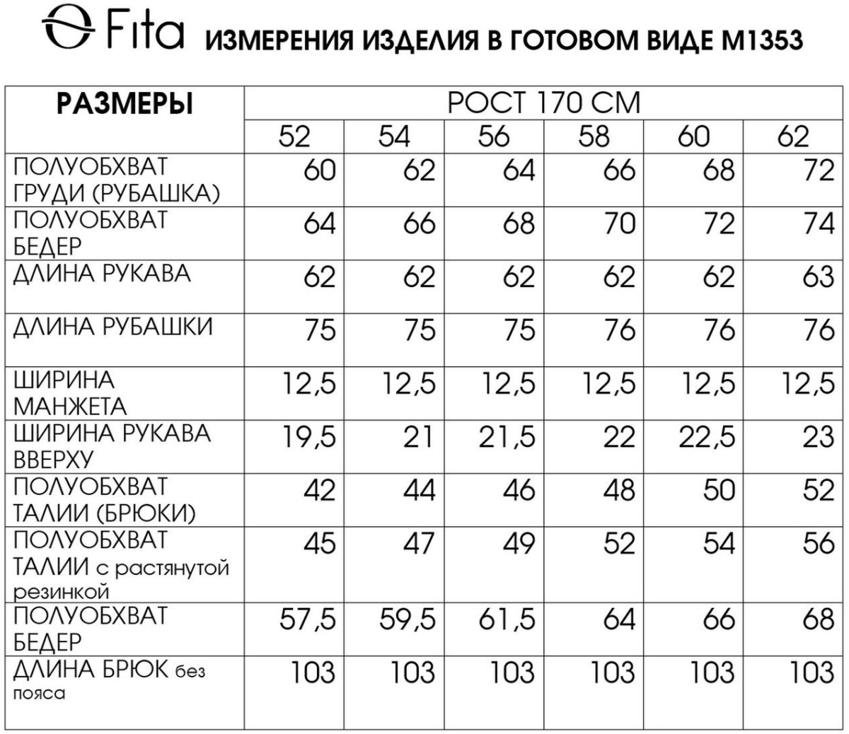 Таблица размеров