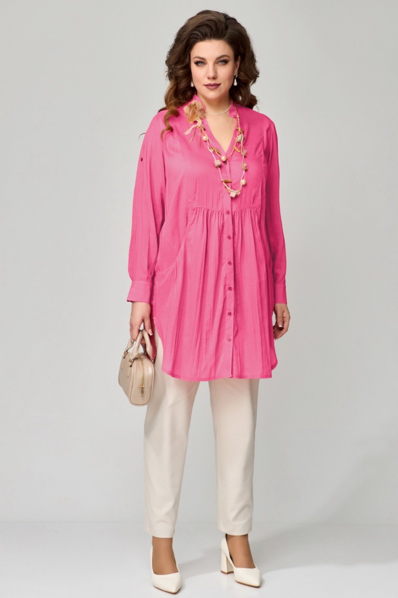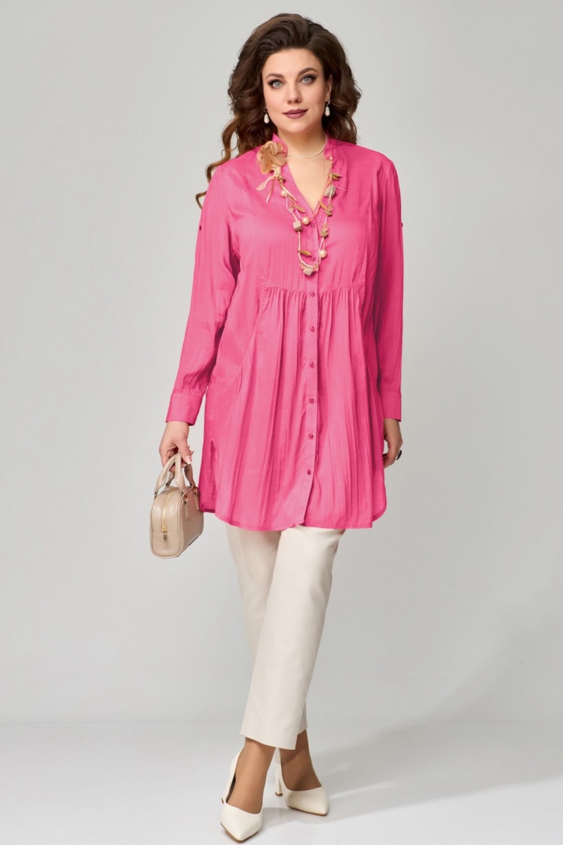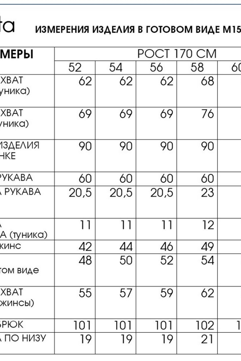 КОМПЛЕКТ ДВОЙКА "Медея". Туника женская, прямого силуэта. Выполнена из хлопковой ткани. Рукав втачной, длинный, по низу притачная манжета с застежкой на пуговицы. Длина рукава регулируется патой. Фигурный вырез горловины, оформленный отрезными планками. Застежка на пуговицах. Воротник стойка. По переду выполнены фигурные карманы с небольшой сборкой по верхнему краю. По линии талии подрез с небольшой сборкой. На спине изделия прямая кокетка, посередине бактовая складка. Низ изделия фигурный, по боковым швам выполнены разрезы. Джинсы - брюки, зауженные к низу, с застежкой на молнию и пуговицы, в боковом шве - карман, по спинке пояса - резинка. Брюки со стандартной посадкой (средней).