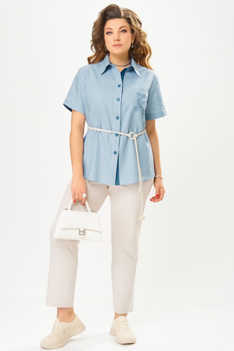 Комплект женский «Загорка» — это идеальное сочетание удобства и стильного дизайна, созданное для современных женщин, которые ценят элегантность и комфорт. Блузка из льняной ткани с вискозой отличается легкостью и приятной текстурой, обеспечивая ощущение свободы и свежести. Ее прямой силуэт подчеркивает естественные линии фигуры, а однобортная застежка с отрезной планкой на пуговицах добавляет классический штрих. Воротник-стойка рубашечного типа придает аккуратность и изысканность, а нагрудная выточка обеспечивает идеальную посадку. Стильные детали делают блузку особенной: накладной карман с декоративной печатью на левой полочке добавляет оригинальности, а спинка с изящным принтом подчеркивает индивидуальность модели. Втачные одношовные рукава завершаются обработанной отделочной тканью обтачкой, создавая утонченный акцент. Завершает образ съемный пояс, позволяющий варьировать посадку и силуэт. Джинсы — это идеальное дополнение к блузке. Зауженный крой элегантно подчеркивает фигуру, а стандартная посадка обеспечивает удобство. Классическая застежка на молнию и пуговицы дополняется боковыми карманами, делая модель не только стильной, но и практичной. Спинка пояса с эластичной резинкой гарантирует комфортную посадку, позволяя джинсам идеально сидеть на любой фигуре. Этот комплект — прекрасный вариант для прогулок по городу, встреч с друзьями и даже деловых мероприятий. Он гармонично сочетает в себе удобство, стиль и женственность, создавая безупречный образ для любого случая.